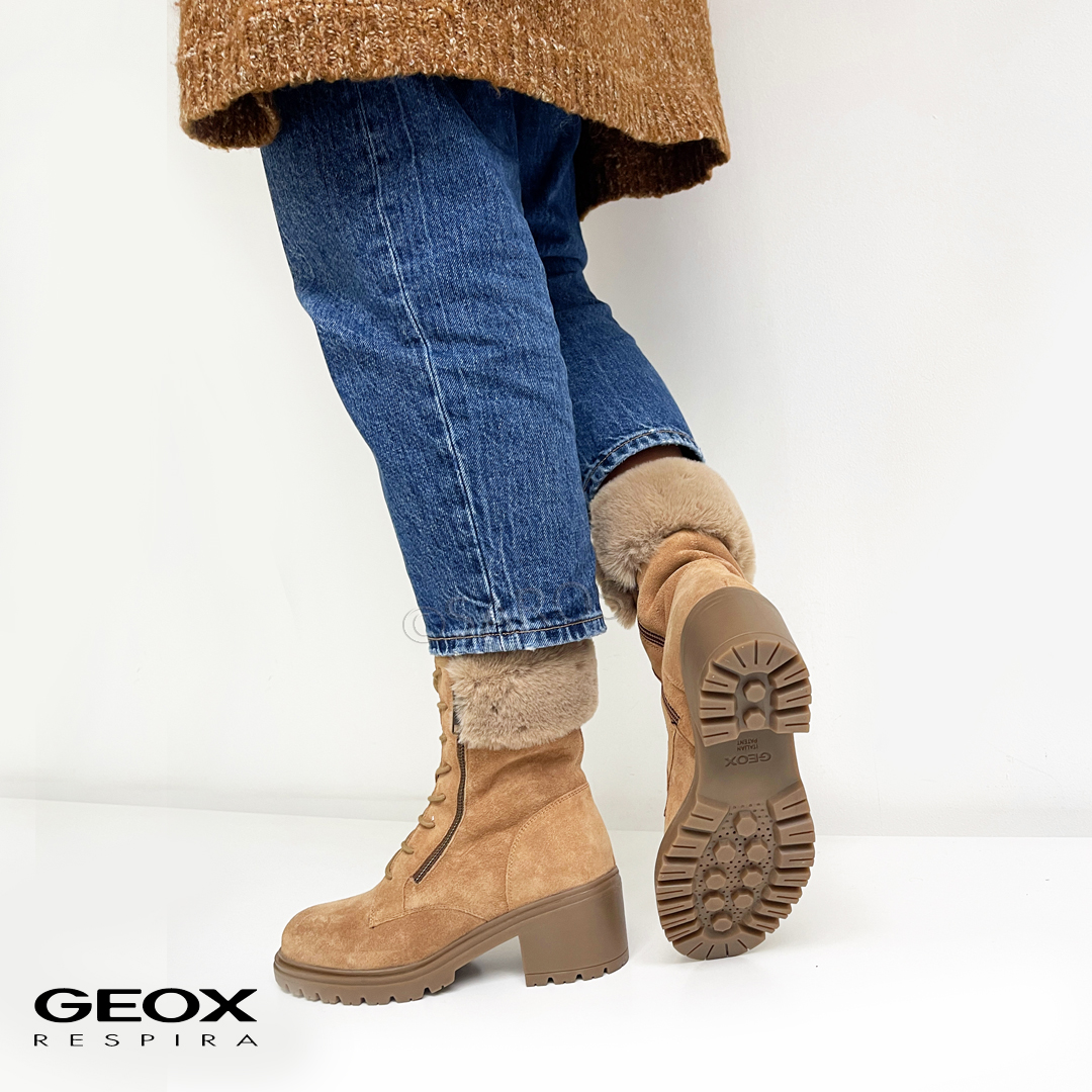 Botim taupe de mulher da geox incrivelmente confortável e quente, perfeito para os dias mais frios. Bota de tacão, oferece a sensação de bem-estar em cada passo que dá. Botim em cordão e fecho na zona lateral, promete a máxima impermeabilidade e respirabilidade proporciona proteção perfeita mesmo em dias de chuva.