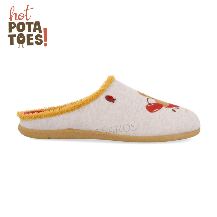Chinelos de quarto Hot Potatoes super divertidos com a frase "Free Beer". Fabricados em malha com palmilha de tecido turco suave e transpirável. Palmilha removível de material reciclado e sola de borracha natural. Forro transpirável.