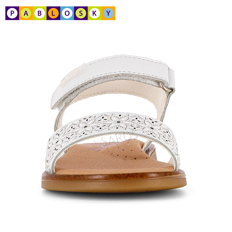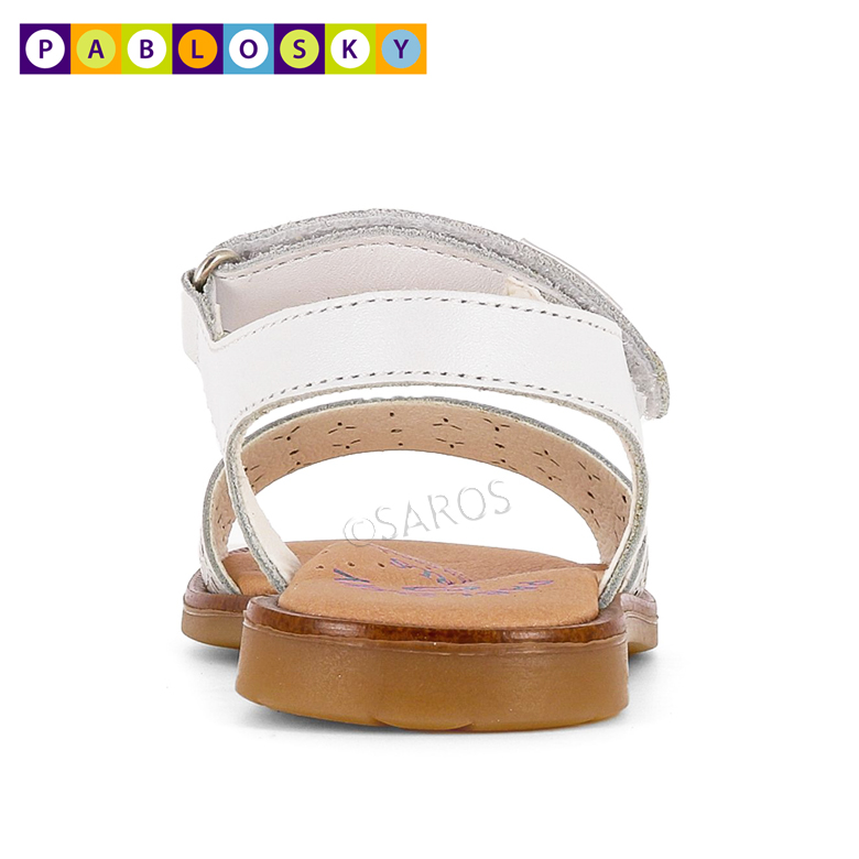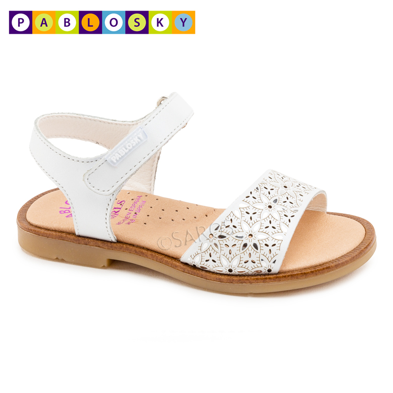 Sandálias Pablosky de menina em pele que garantem a transpiração correta do pé! Palmilha de amortecimento, super absorvente e antibacteriana. Sola de borracha flexível, antiderrapante e resistente.Incorpora arco fisiológico de baixa densidade até ao tamanho 30.