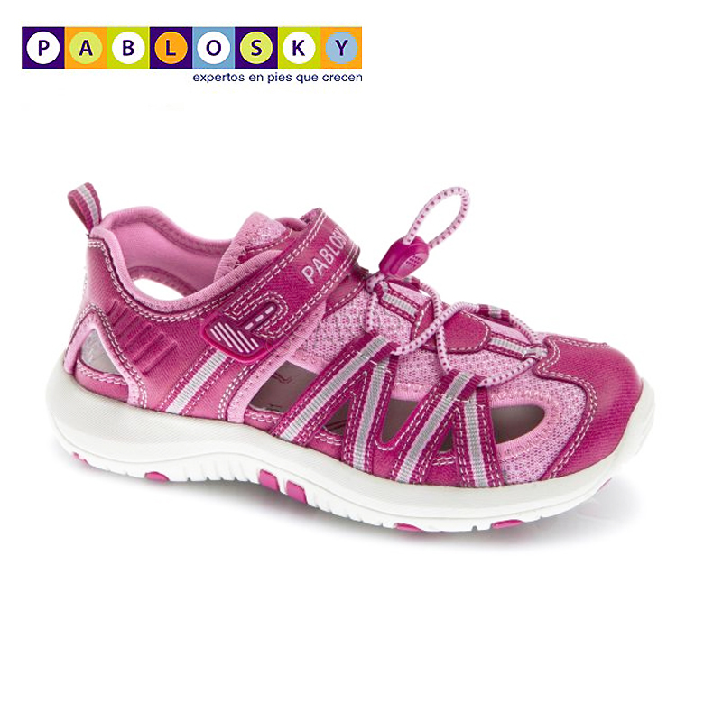 Sandália Pablosky com um desenho moderno e desportivo, fabricada com os melhores materiais, donde se destaca o forro textil transpirável, palmilha amortecedora antibacteriana e uma sola em borracha flexivel e antideslizante.