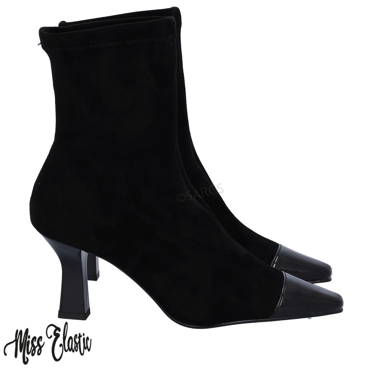 Botim casual feminino,  em tecido ECO-elástico ajustável com tecnologia "Adaptive Style" sem componentes de origem animal.  Botins de senhora, em bico e tacão à boca de sino com altura de 6cm, promete um conforto absoluto e elegância máxima.