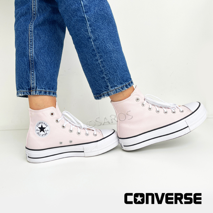 Sapatilhas Converse Chuck Taylor All Star Clean Platform High Top. Uns ténis Alll Star em tecido na cor rosa claro e ainda com plataforma. Um modelo que não irá deixar ninguém indiferente.