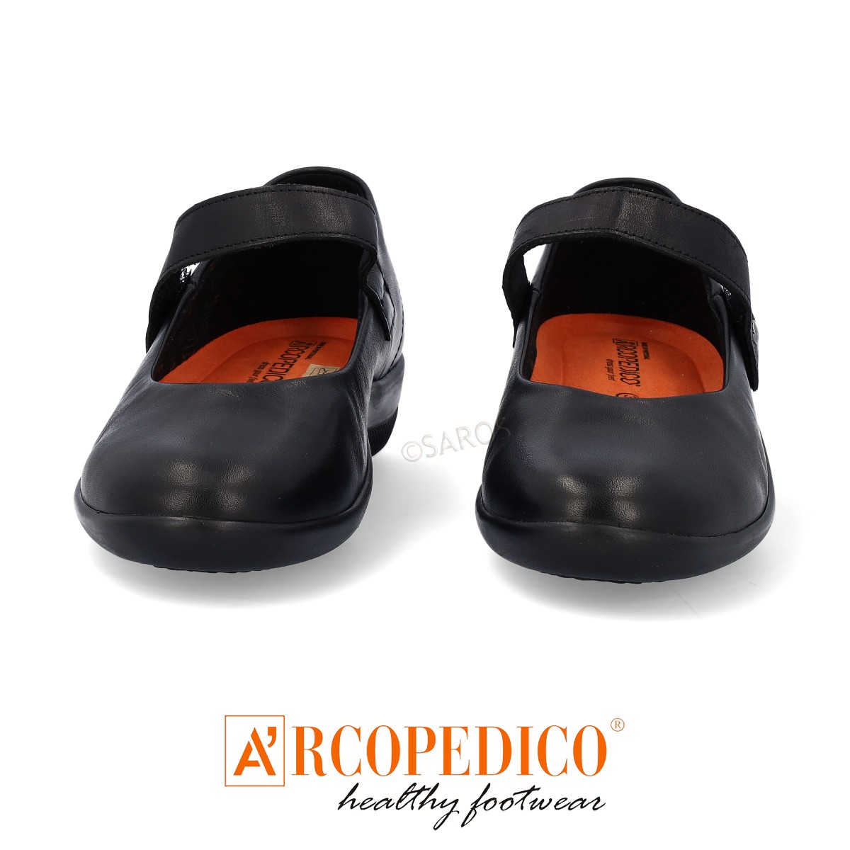 Sapatos Arcopédico de senhora em pele sustentável Premium. Pele extremamente macia e maleável. Tira superior com velcro para ajuste perfeito ao pé. Apoio do arco plantar.