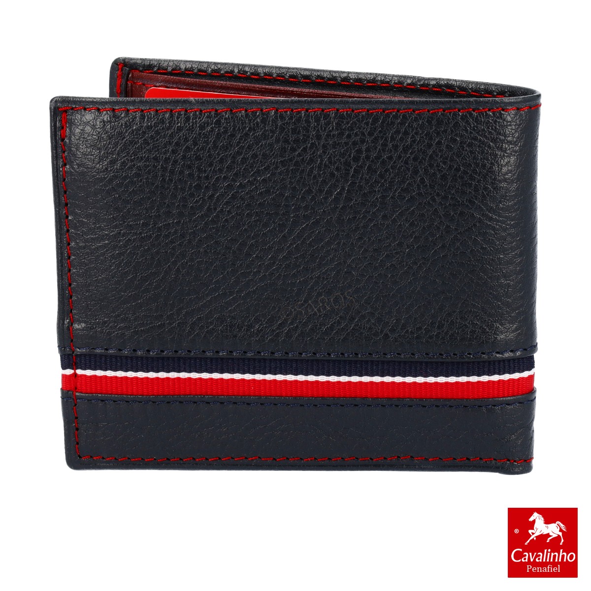 Carteira da Cavalinho da linha "The Sailor", na cor Azul. Uma carteira em pele com aplicação em tecido.