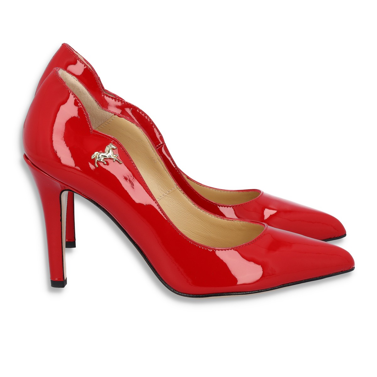 Sapato Stiletto Cavalinho em pele verniz na cor vermelho. Interiores forrados a pele e palmilha almofadada para maior conforto. Um clássico indispensável.