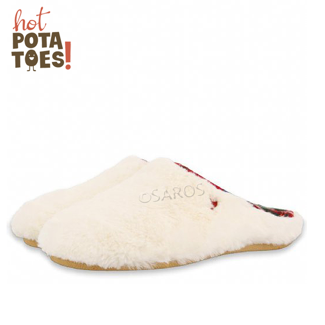 Chinelos Hot Potatoes 64289 Bege. Chinelos de quarto Hot Potatoes com parte superior em pelo e palmilha de tecido turco suave. Palmilha removível de material reciclado e sola de borracha natural. Forro transpirável.