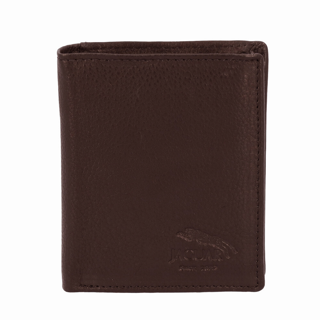 Carteira de pele macia para Homem da Jaguar, em castanho. Carteira prática de usar com vários compartimentos: 6 compartimentos para cartões, 1 compartimento plastificado, 2 compartimentos interiores escondidos e um porta-moedas a fechar com mola, 1 compartimento extra com fecho de correr Dimensões: L: 10,5 x A: 9 x P: 2 (cm)