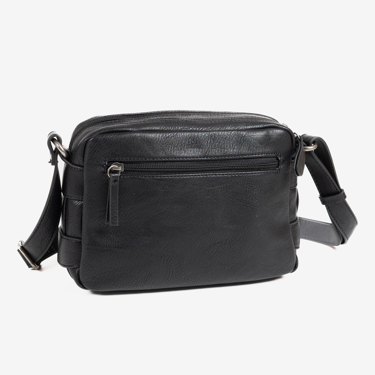 Bolsa de ombro pequena, modelo clássico para mulher, em preto. Fabricada com materiais de couro sintético de alta qualidade. Bolsa com quatro compartimentos, um principal com o fecho em zíper  de nylon, com dois  na frente e um na parte de trás para poder guardar o telemóvel.