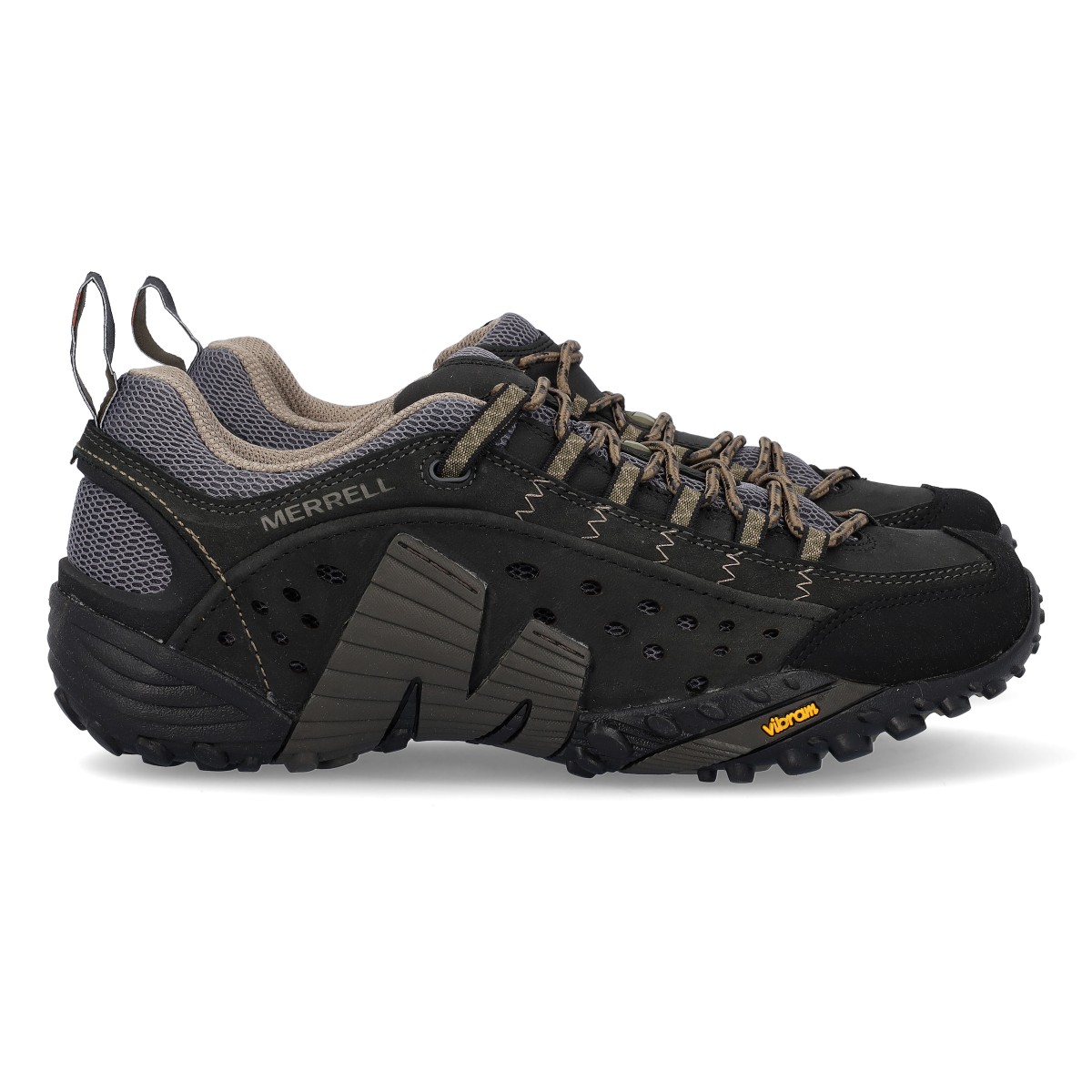 Modelo de Sapatilhas Merrell Intercept Smooth Black para Homem, um exemplo de qualidade e conforto. Sapatilhas em preto com a tecnologia de Air Cushion (absorve o choque e dá estabilidade), tecnologia OrthoLite (Uma palmilha respirável e com amortecimento) e a tecnologia Vibram (proporciona maior estabilidade e aderência).