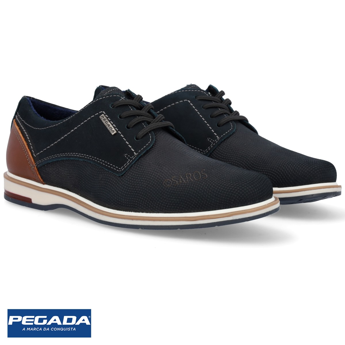Sapatos de Homem em couro azul de estilo mais social. Forro especial que garante conforto e absorção de suor, características necessárias para manter o pé seco e arejado. A palmilha é macia e possui Tecnologia AMORTECH, com um amortecedor em gel na região do calcanhar, material que garante ainda menos impactos na pisada. Sola antiderrapante e de alta flexibilidade.