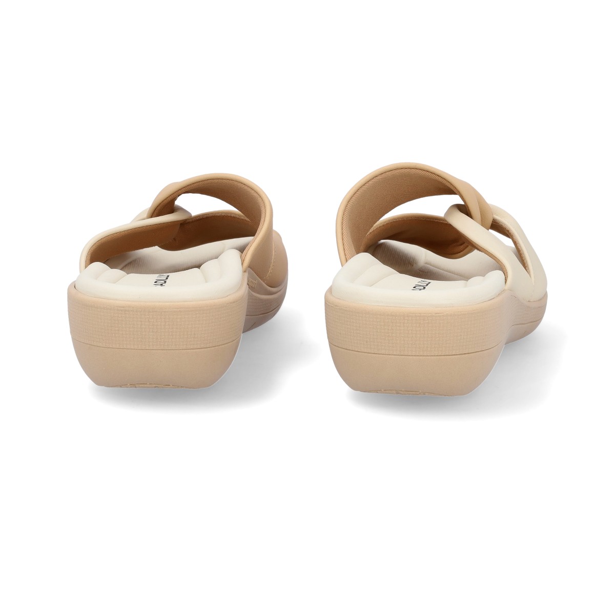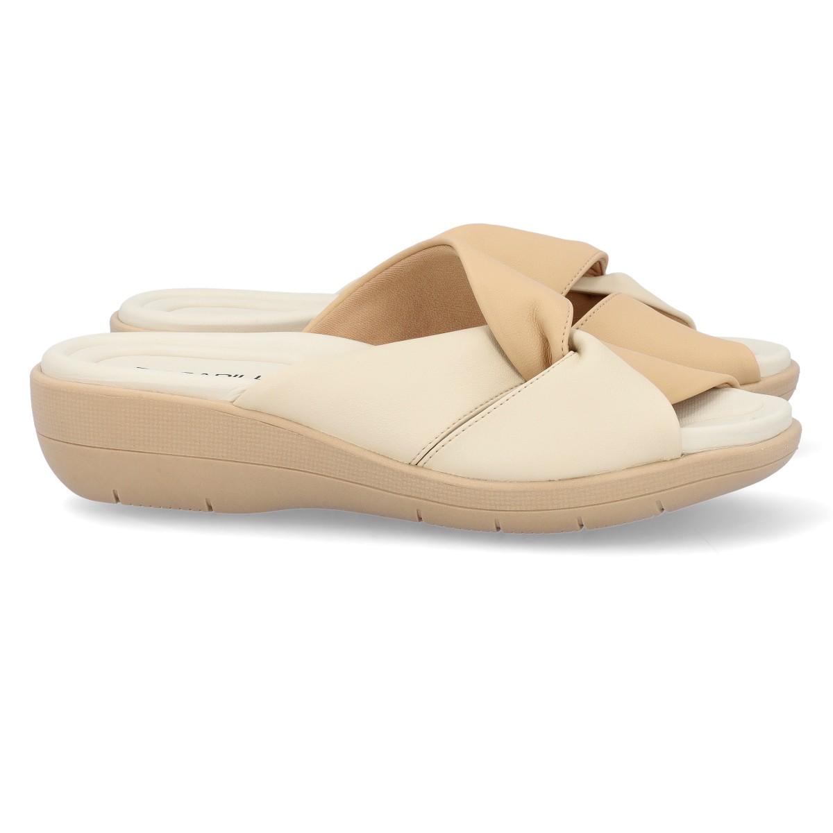 Chinelo de senhora fáceis de calçar. Palmilha anatómica para maior absorção de impactos e consequentemente maior conforto. Cunha baixa de 2 até 3,5 cm.