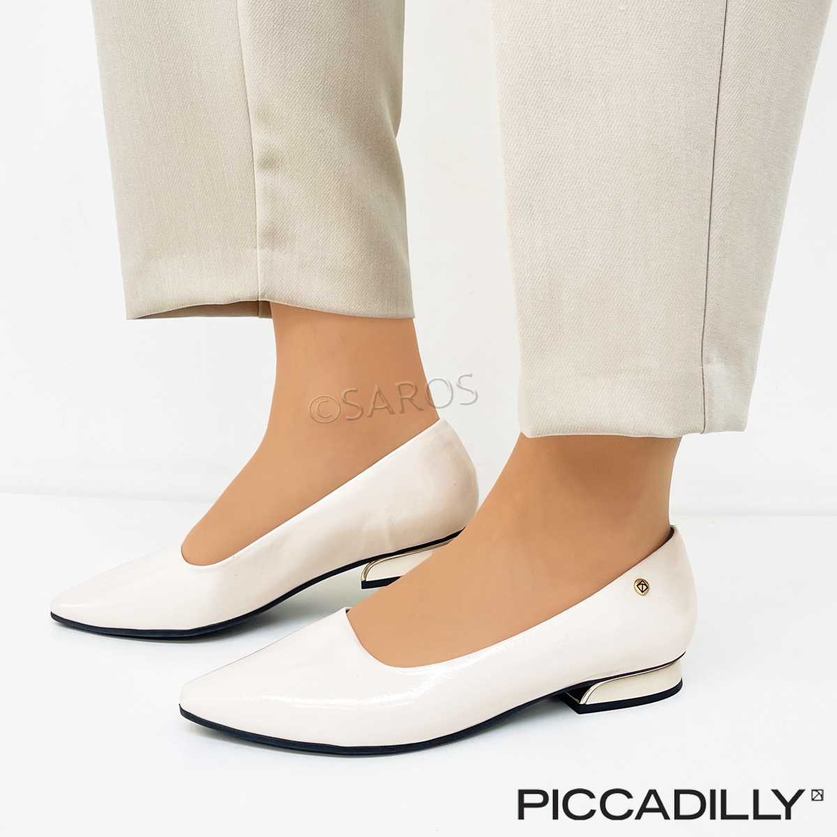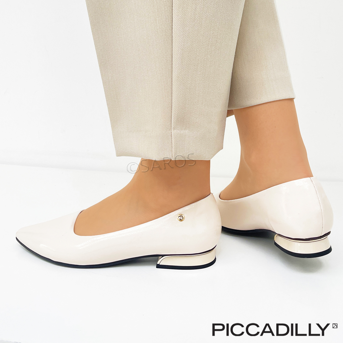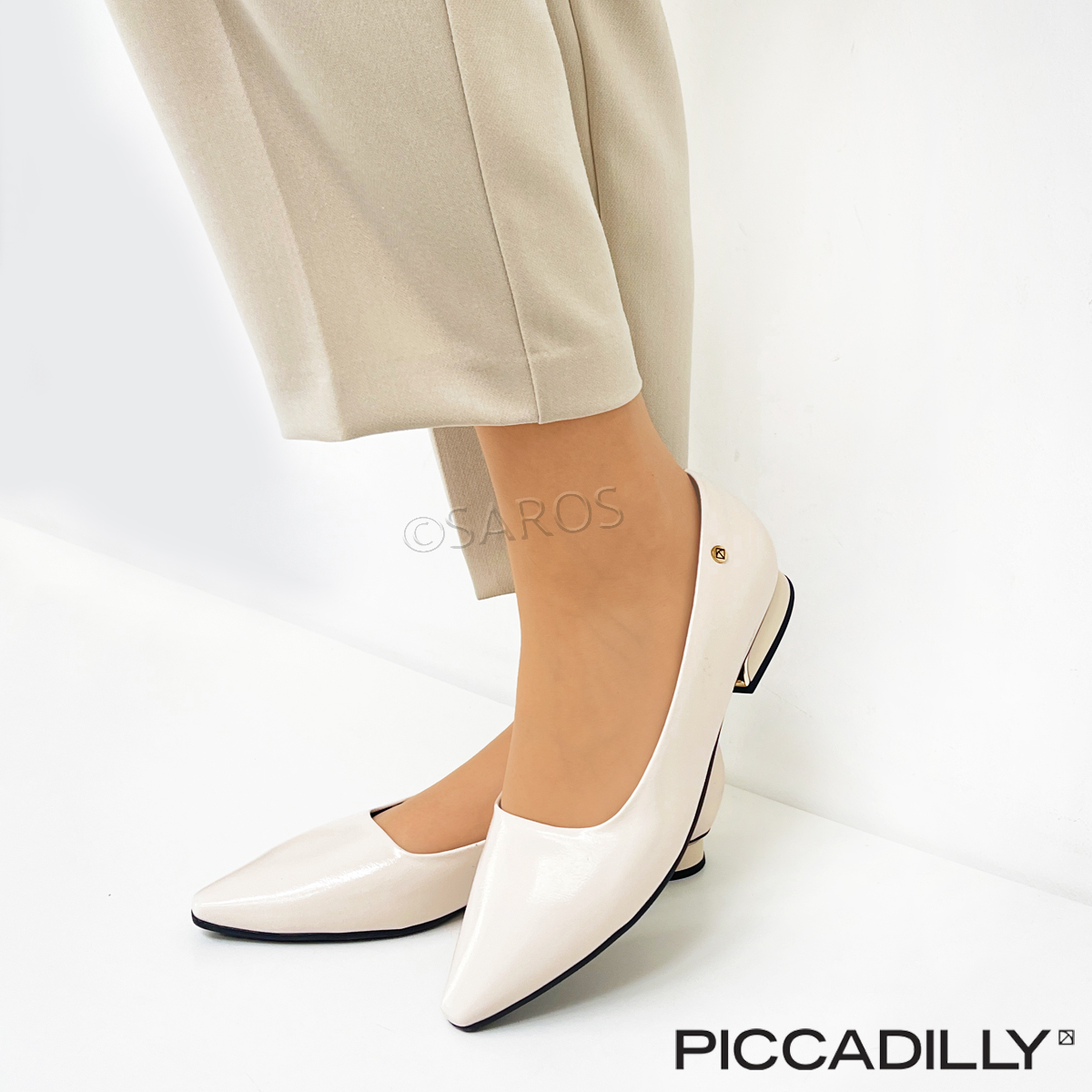 Sapatos Piccadilly de salto baixo (2cm) em branco. Um modelo elegante que poderá usar no dia a dia ou em cerimónias, sem comprometer o visual. O calçado Piccadilly tem o "Calce Perfeito": conjunto de benefícios exclusivos que respeita a anatomia do pé e diminui o cansaço.