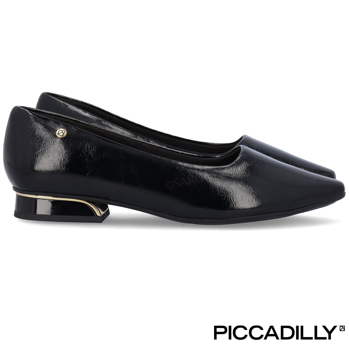 Sapato Piccadilly Sapatos Piccadilly de salto baixo (2cm) em verniz preto. Um modelo elegante que poderá usar no dia a dia ou em cerimónias, sem comprometer o visual. O calçado Piccadilly tem o "Calce Perfeito": conjunto de benefícios exclusivos que respeita a anatomia do pé e diminui o cansaço. Preto