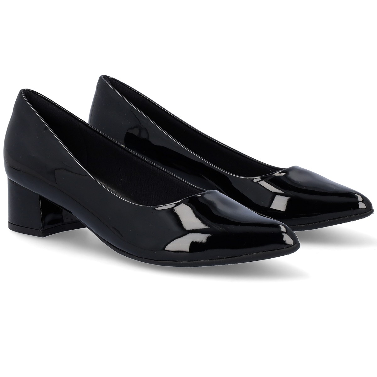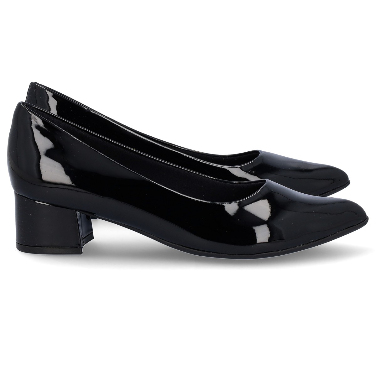 Sapatos da Piccadilly em verniz Preto, de salto baixo com altura de 3,5 cm. Uns sapatos leves e flexíveis que oferecem máximo conforto e uma beleza incrível.