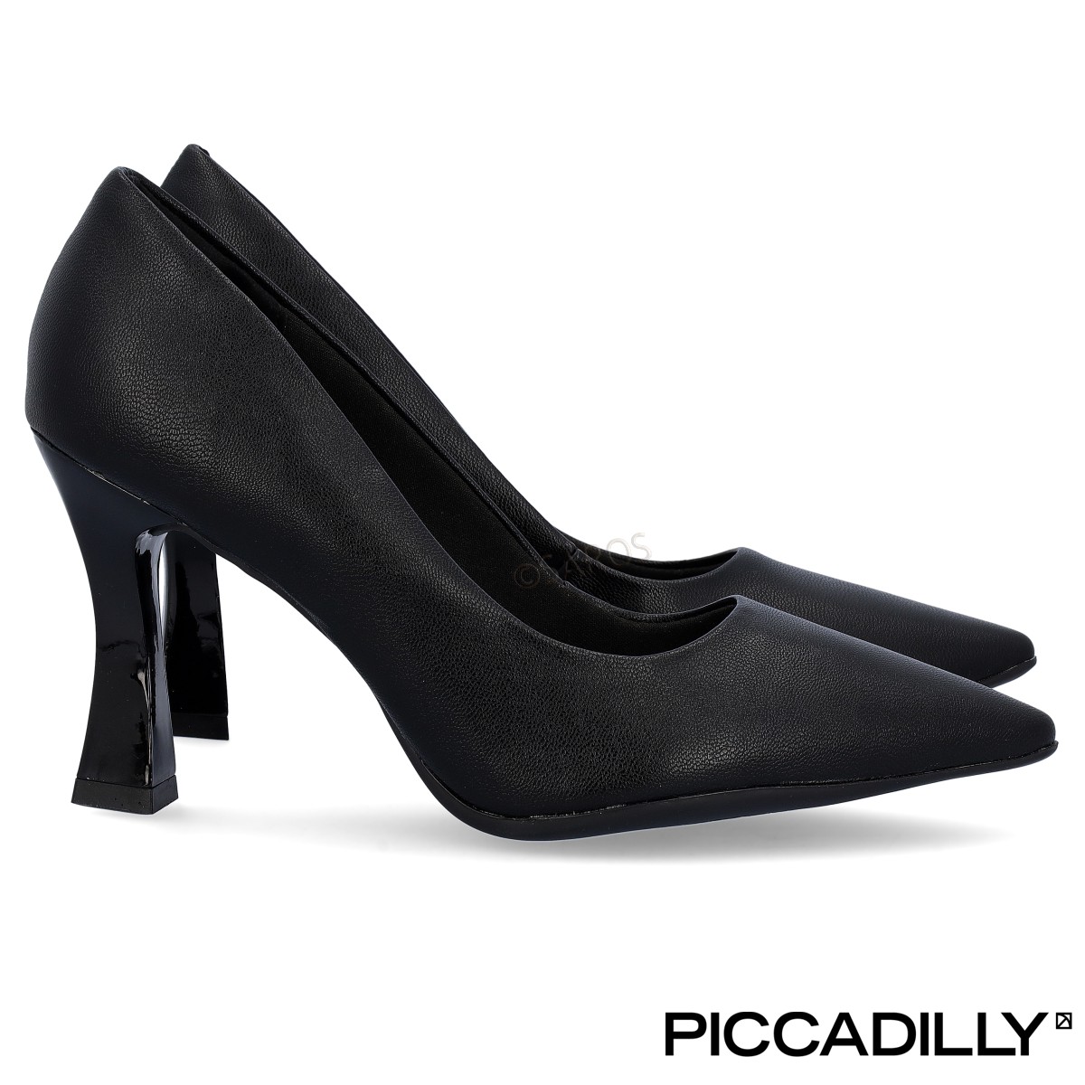 Stiletto confortável Piccadilly com salto "boca de sino", em preto, que, para além de dar um toque de modernidade ao look, confere mais estabilidade ao andar. Sapato leve e flexível, fabricado com materiais macios, propocionando bem-estar ao pé por longas horas.
