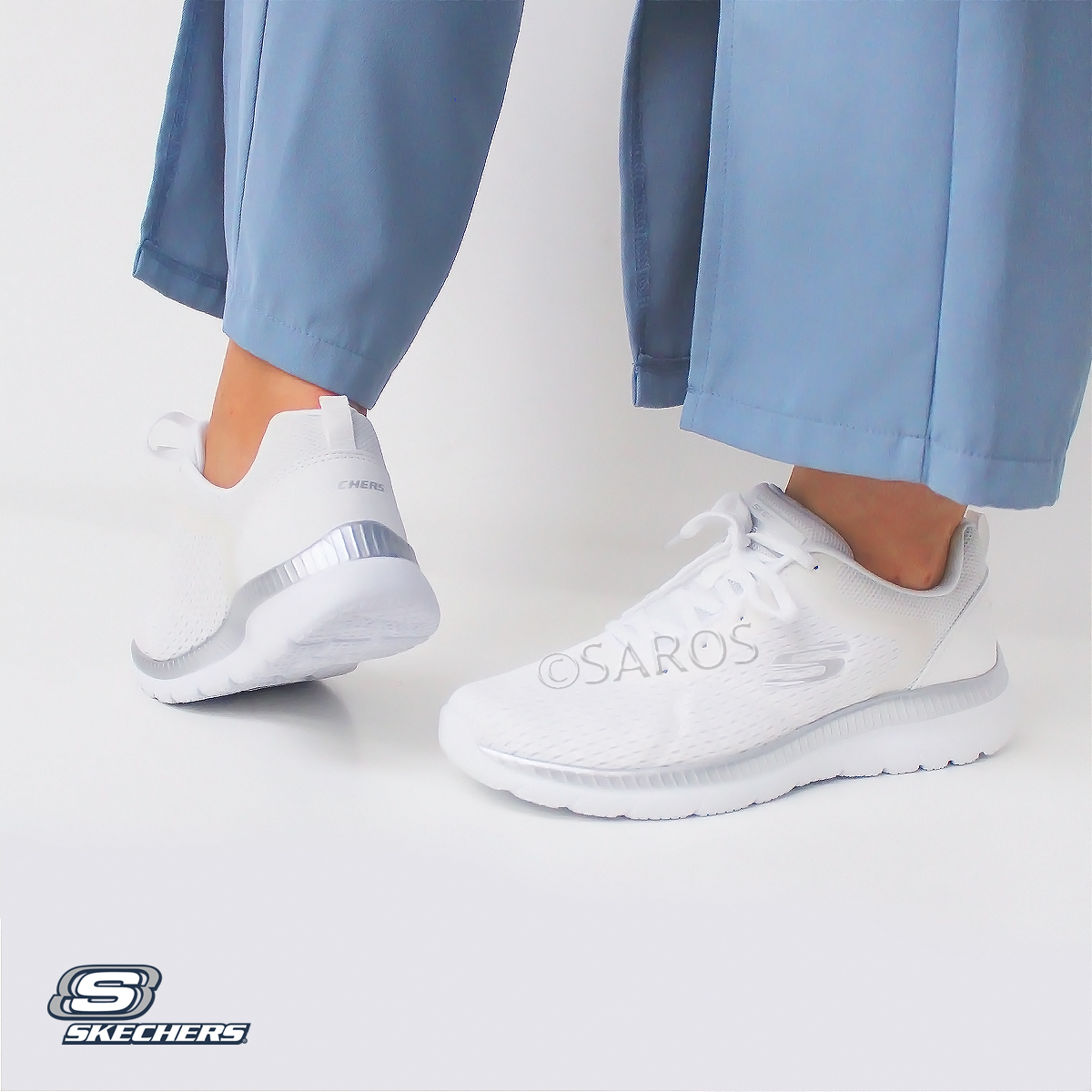 Sapatilha Skechers Bountiful 12607 Branco E Prateado